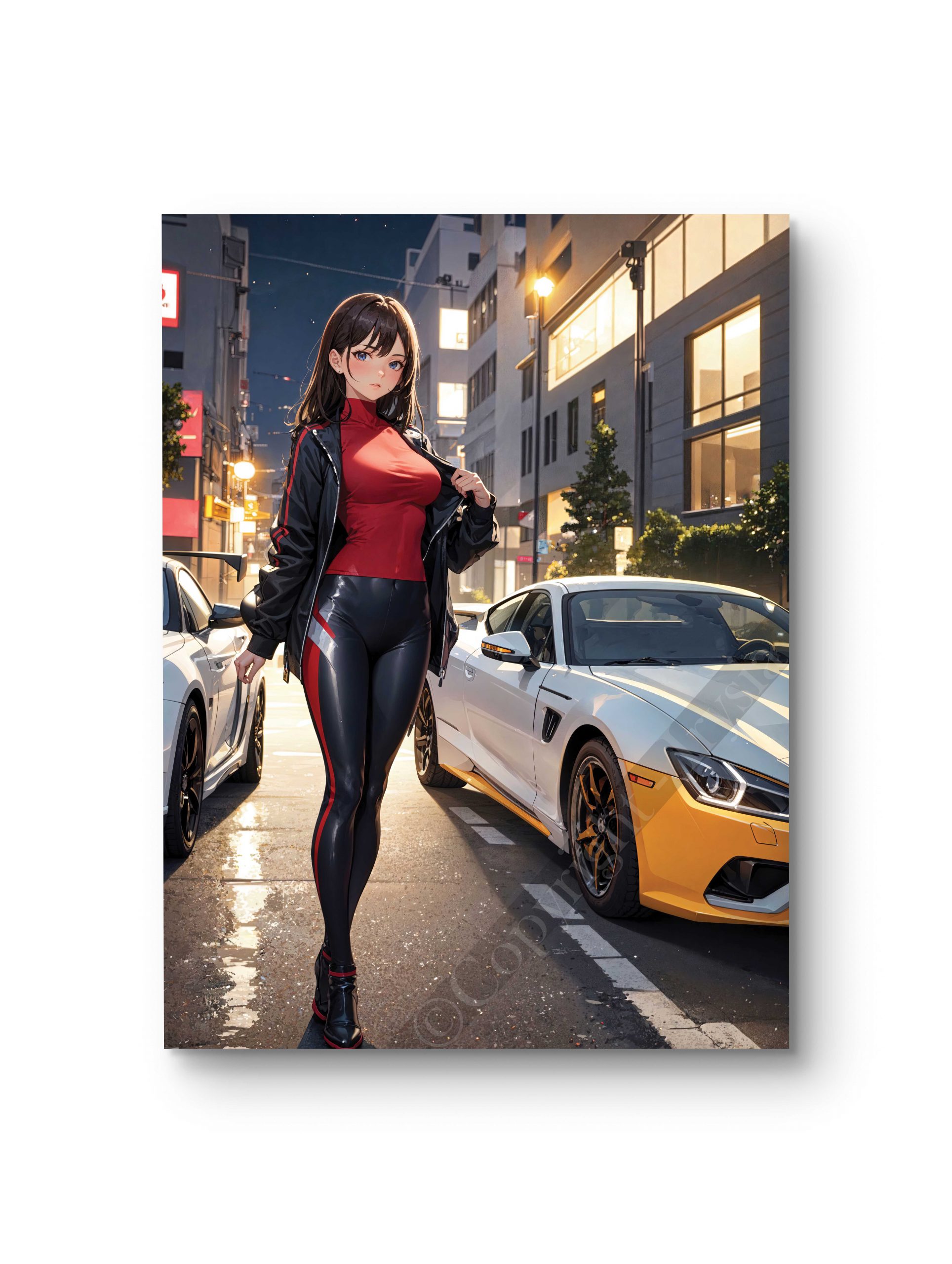 Une femme rebelle déambule dans une ville illuminée, vêtue de cuir noir, dégageant une aura de confiance et de charisme. Son attitude nonchalante et son décor urbain dynamique en font une œuvre parfaite pour une décoration moderne et branchée. Disponible en plusieurs tailles et supports (toile, châssis entoilé, verre, verre acrylique, aluminium).