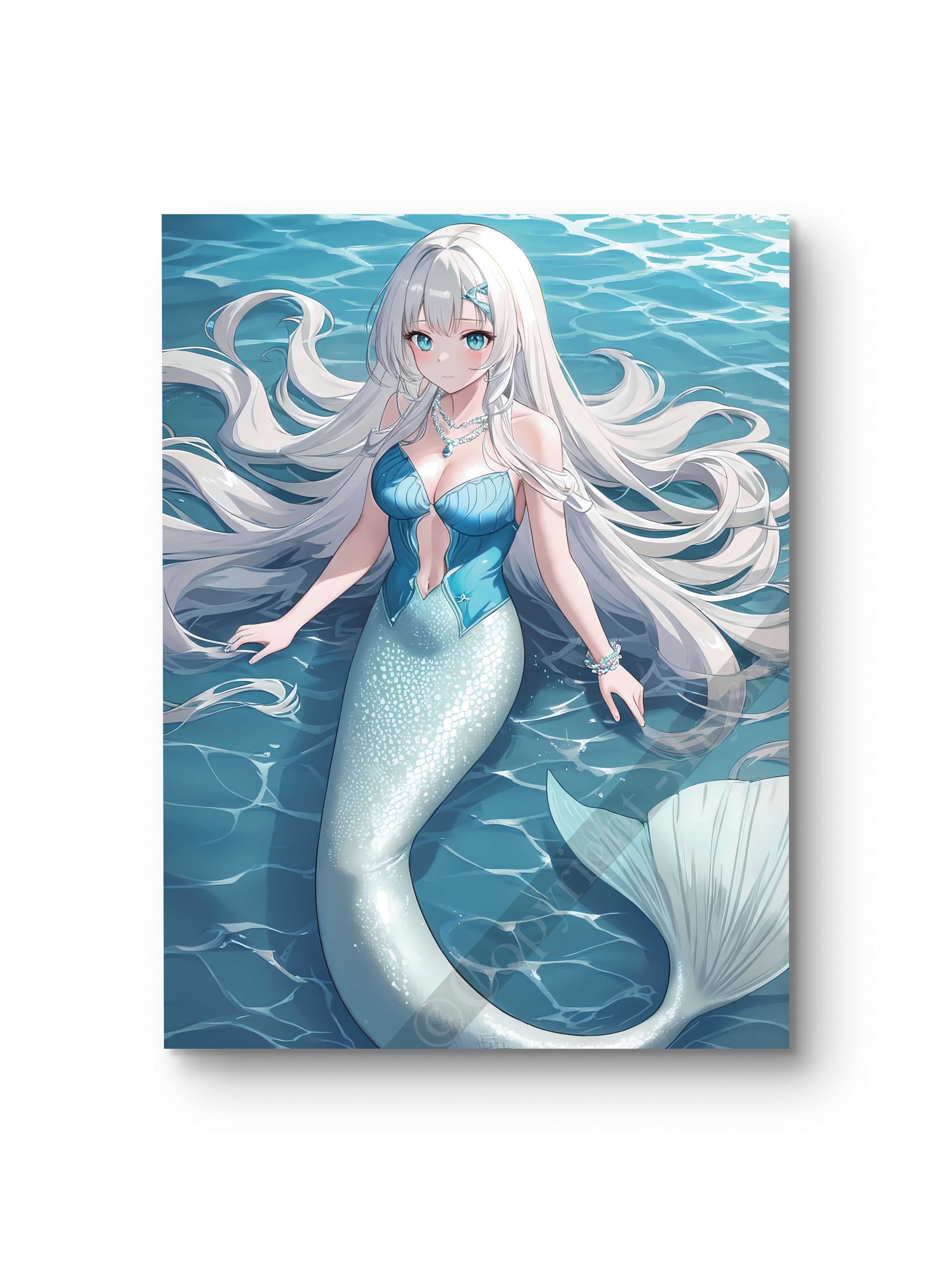 Ce tableau en style anime met en scène une sirène majestueuse évoluant sous les reflets scintillants de l’eau. Sa chevelure blanche flottant autour d’elle et son expression sereine en font une œuvre captivante et immersive, idéale pour une décoration aquatique et magique. Disponible en plusieurs tailles et supports (toile, châssis entoilé, verre, verre acrylique, aluminium).