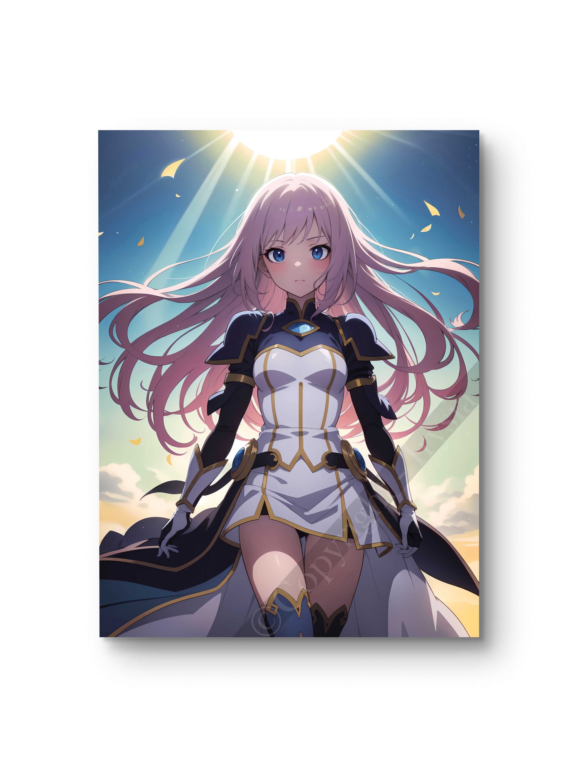 Ce tableau en style anime illustre une guerrière lumineuse, debout sous un ciel éclatant. Sa posture fière et son armure étincelante évoquent une héroïne déterminée et inspirante, parfaite pour une décoration épique et motivante. Disponible en plusieurs tailles et supports (toile, châssis entoilé, verre, verre acrylique, aluminium).