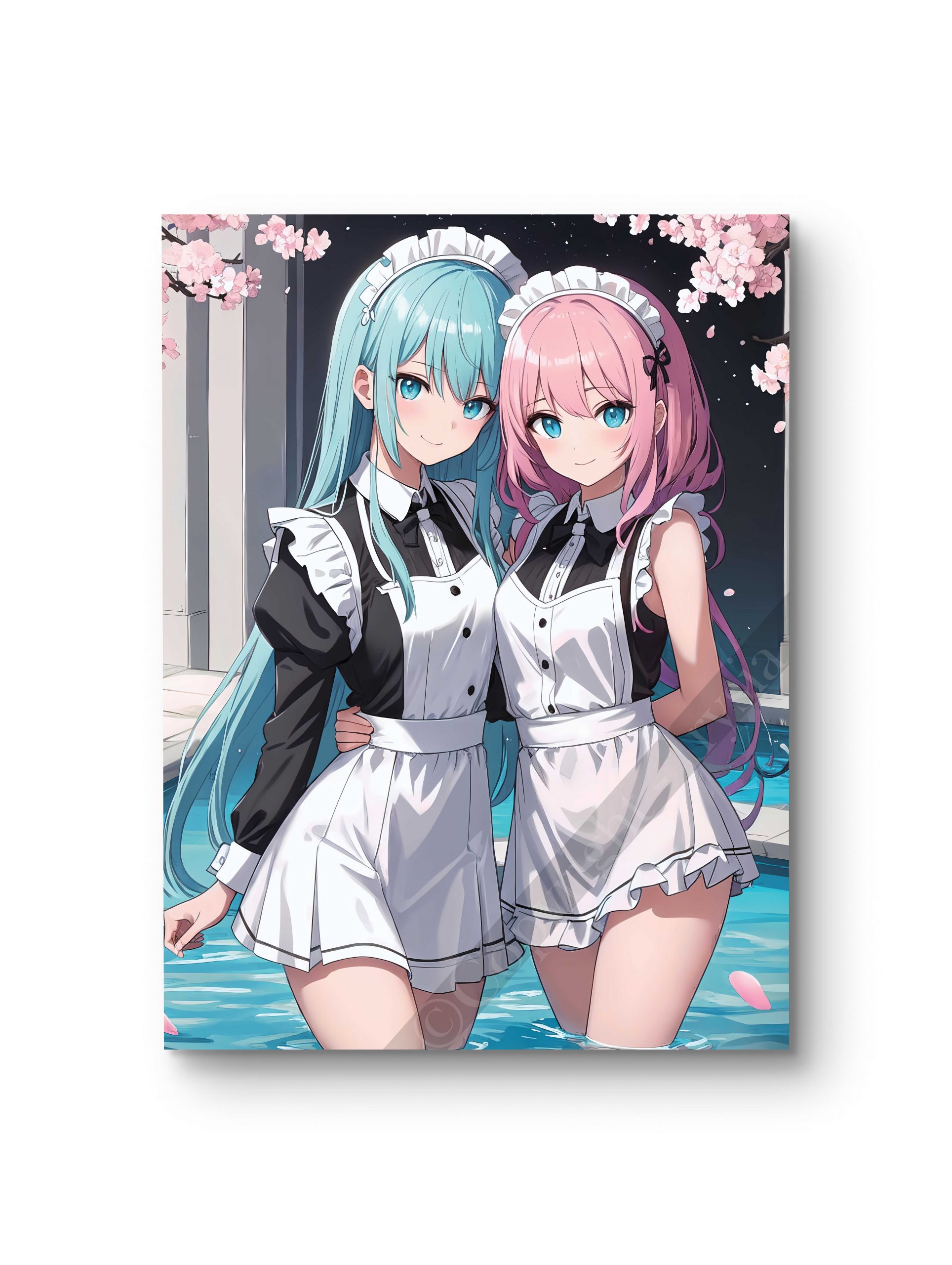 Plongez dans un univers enchanteur avec cette collection de tableaux mettant en scène deux jeunes filles au style anime, vêtues d’un uniforme de maid raffiné. L’harmonie des couleurs pastel et la finesse des détails créent une ambiance douce et immersive, idéale pour les amateurs de culture japonaise et d’art visuel inspiré des mangas. Le fond naturel, parsemé de fleurs de cerisier et de paysages apaisants, renforce l’atmosphère féérique de ces œuvres. Disponibles sur toile, châssis entoilé, verre, verre acrylique et aluminium, ces tableaux garantissent une impression haute définition avec un rendu éclatant et une durabilité exceptionnelle. Un choix parfait pour une décoration romantique et poétique.