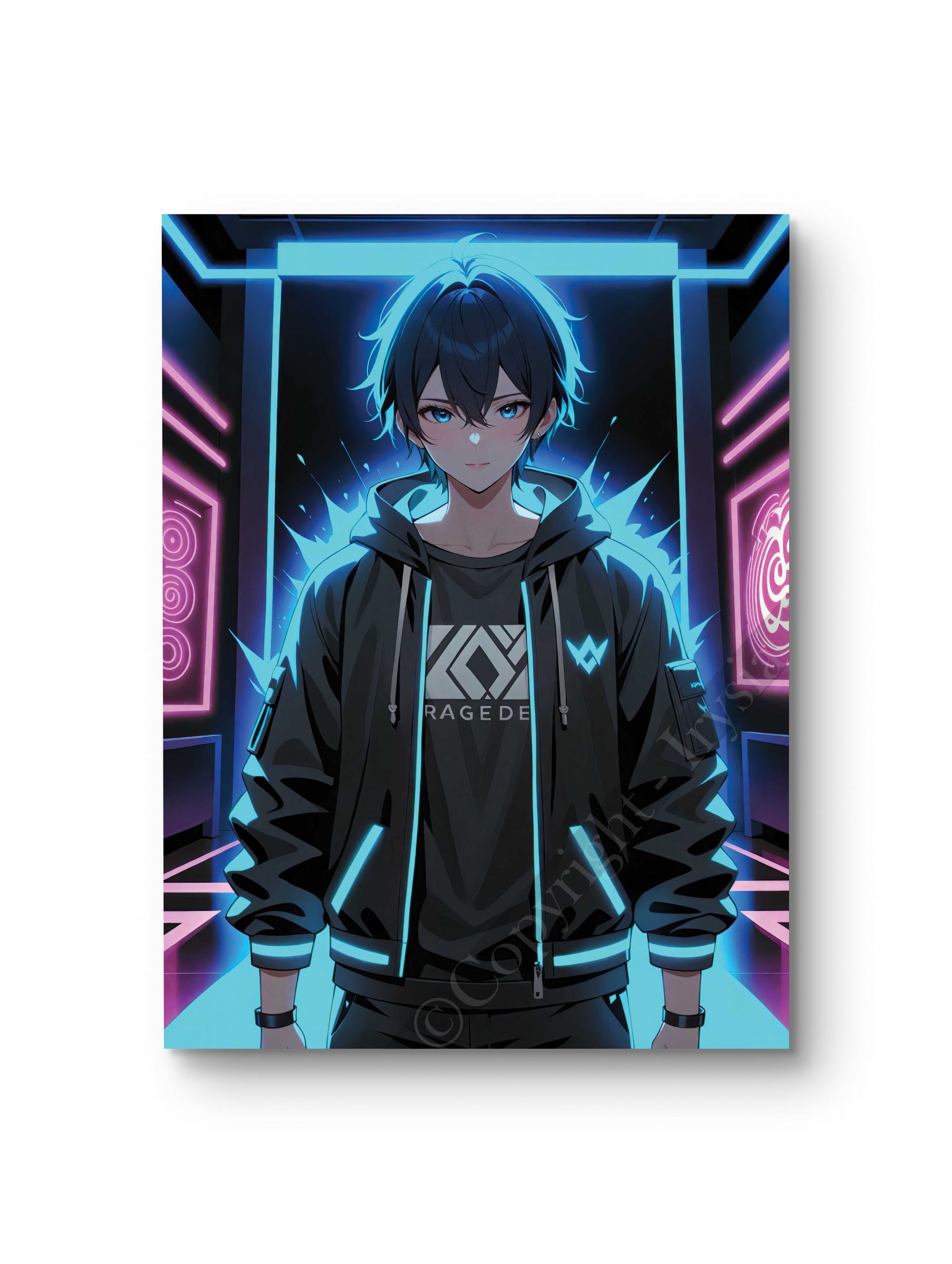 Un chef-d’œuvre futuriste représentant un jeune homme devant un écran cybernétique. Idéal pour les amateurs de science-fiction et d’esthétique high-tech. Disponible en diverses tailles et supports, avec une qualité d’impression saisissante.