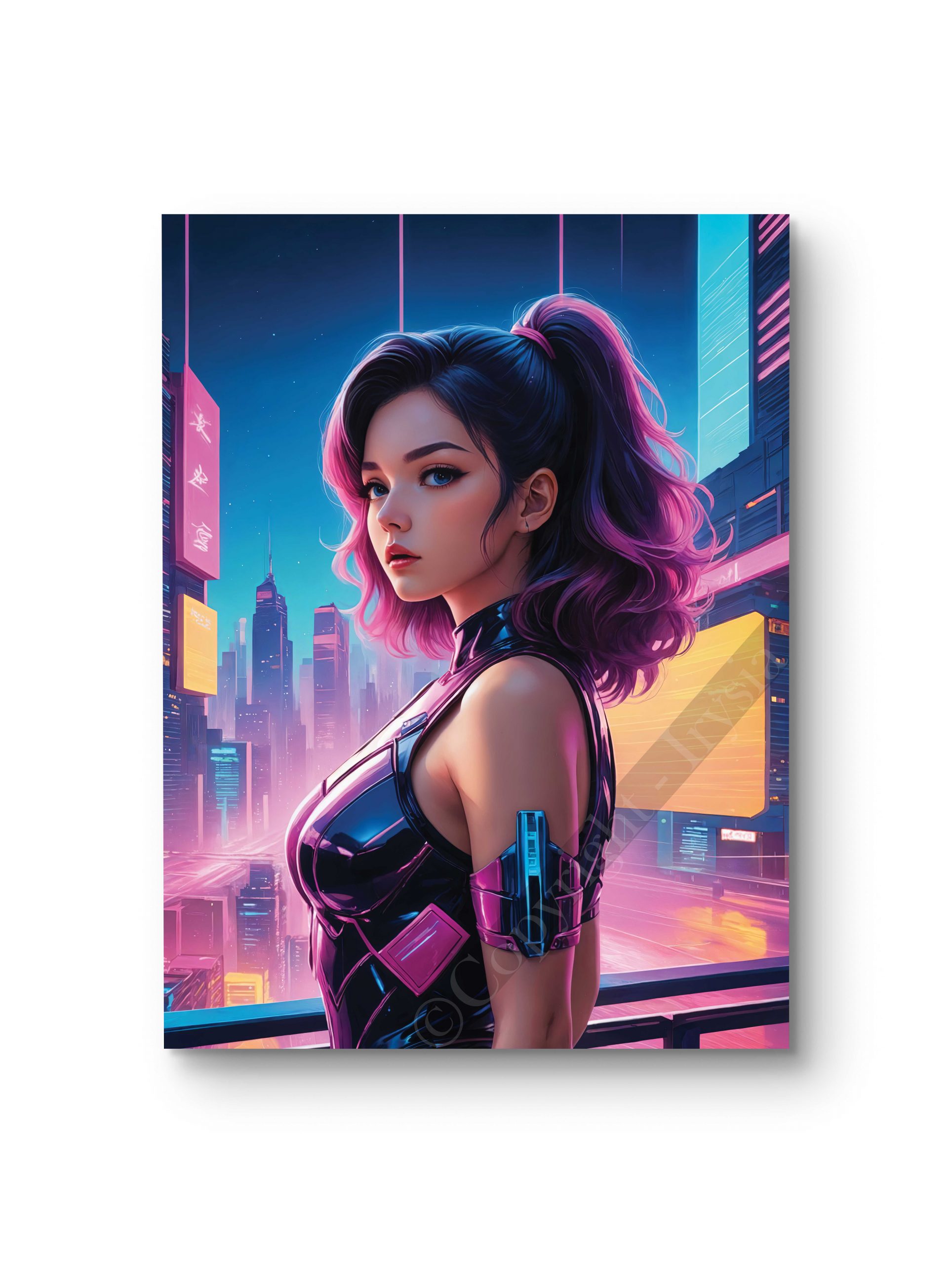 Un portrait détaillé d’une guerrière cybernétique dans une ville futuriste. Un tableau parfait pour les amateurs d’univers sci-fi et de cyberpunk. Disponible en plusieurs formats et supports. Ce tableau offre une impression haute définition sur toile, verre, verre acrylique et aluminium,