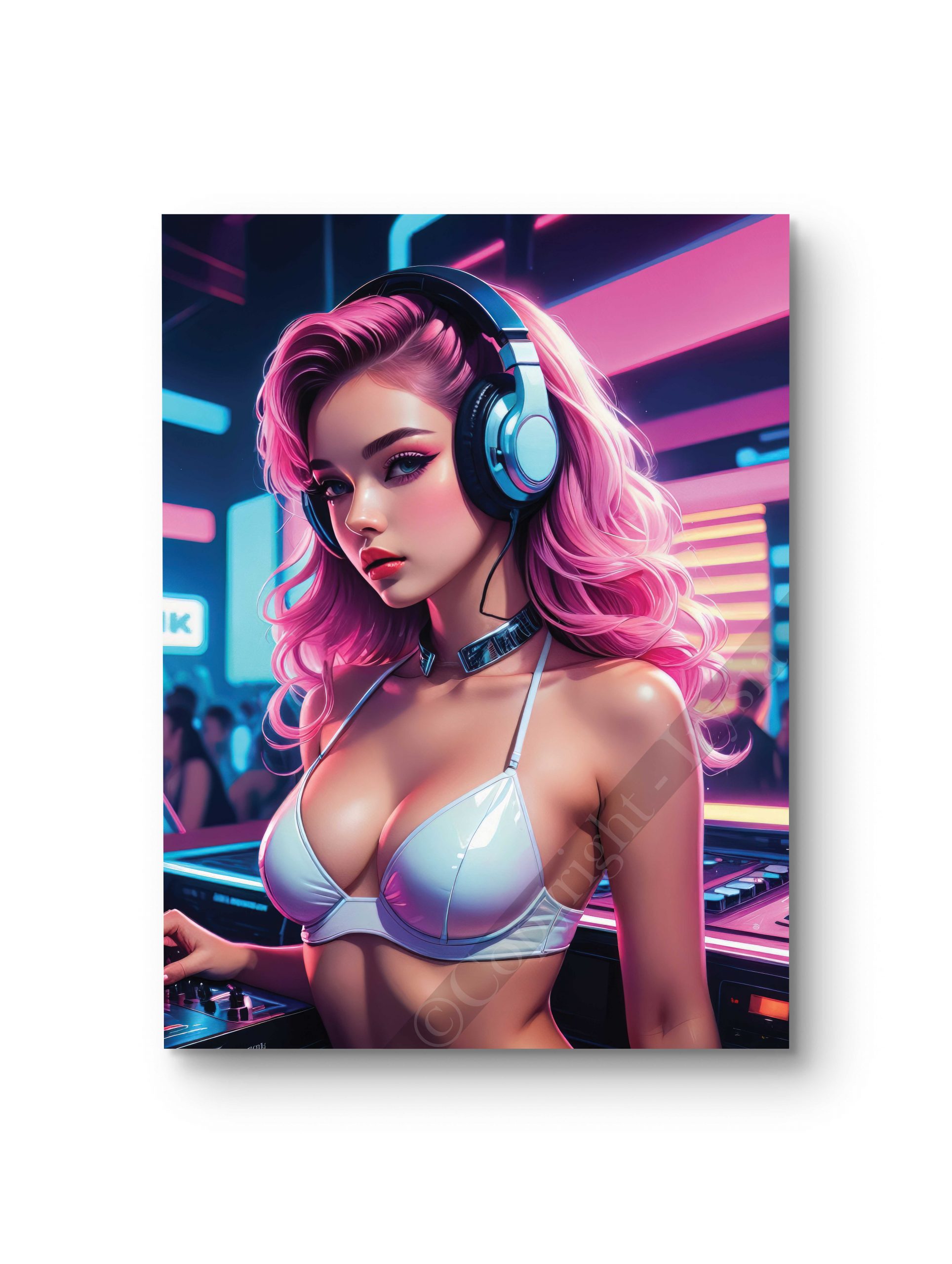 Ce tableau saisissant met en scène une DJ futuriste, plongée dans une ambiance électrisante aux couleurs néon. Ses écouteurs et son style moderne font d’elle une icône de la musique synthwave, parfaite pour une décoration dynamique et immersive. Disponible sur plusieurs supports, ce tableau offre une impression haute définition pour un effet saisissant. Ce tableau offre une impression haute définition sur toile, verre, verre acrylique et aluminium,