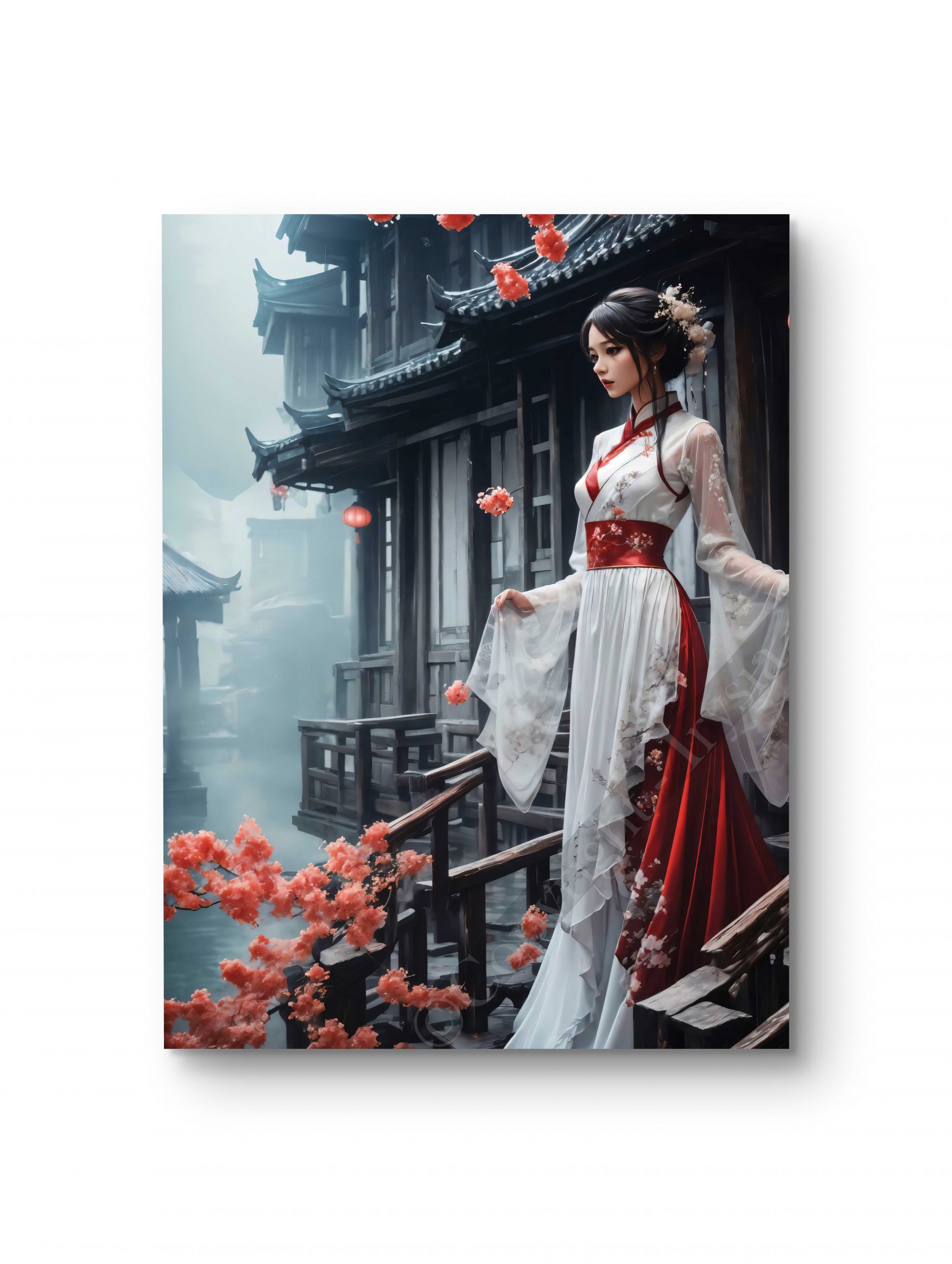 Un tableau délicat illustrant une femme en tenue traditionnelle japonaise, sublimée par des fleurs de cerisier. Une œuvre poétique et raffinée qui apporte une touche de sérénité à votre espace. Disponible en plusieurs tailles et supports : toile, châssis entoilé, verre, verre acrylique et aluminium.