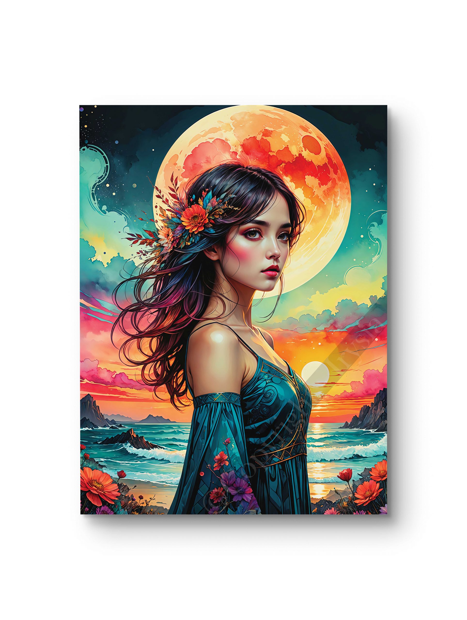 Un tableau fascinant représentant une femme dans un décor féerique baigné de lumière. Les couleurs chaudes et les détails soignés donnent à cette œuvre une atmosphère magique et enchanteresse. Parfait pour une décoration élégante et poétique. Disponible en plusieurs tailles et supports : toile, châssis entoilé, verre, verre acrylique et aluminium.