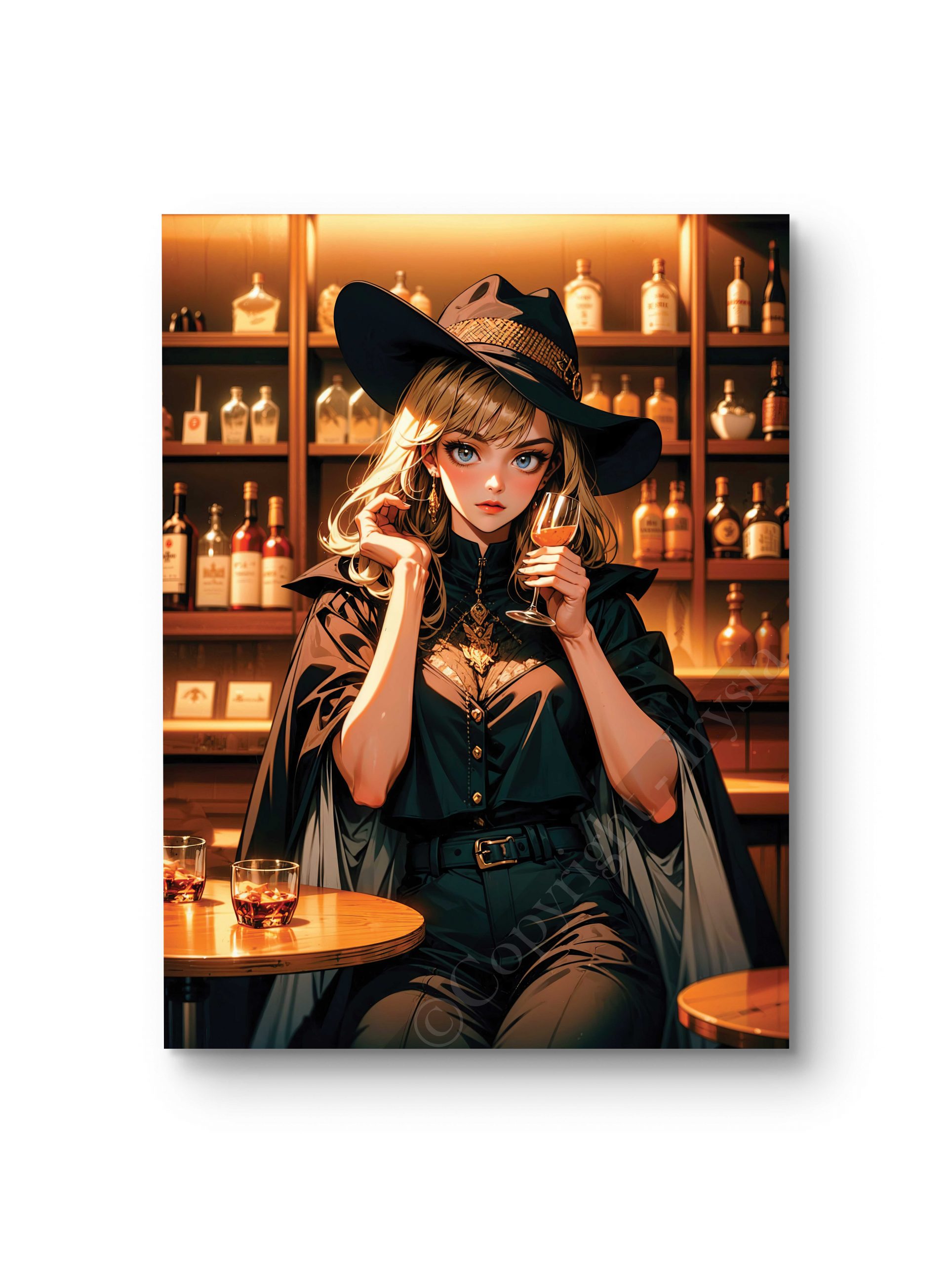 Ce tableau enchanteur représente une sorcière élégante dans un bar tamisé, offrant une atmosphère mystérieuse et raffinée. Un choix idéal pour une décoration à l’ambiance magique et feutrée. Disponible en plusieurs tailles et supports : toile, châssis entoilé, verre, verre acrylique et aluminium.