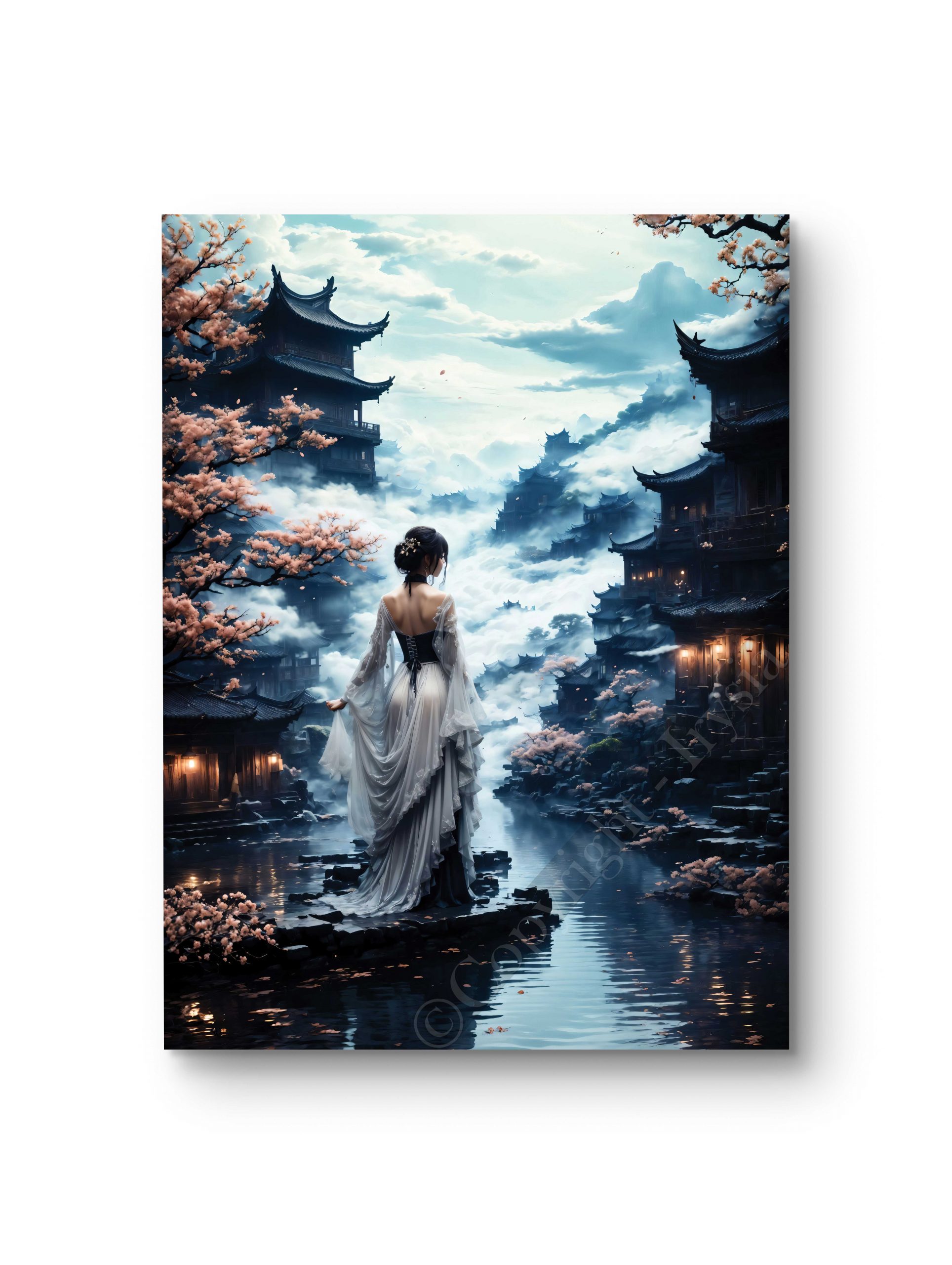 Ce tableau raffiné met en scène une femme en kimono évoluant dans un décor traditionnel japonais. L’élégance de la composition et la délicatesse des couleurs apportent une touche zen et harmonieuse à votre intérieur. Idéal pour une décoration inspirée de la culture asiatique. Disponible en plusieurs tailles et supports : toile, châssis entoilé, verre, verre acrylique et aluminium.