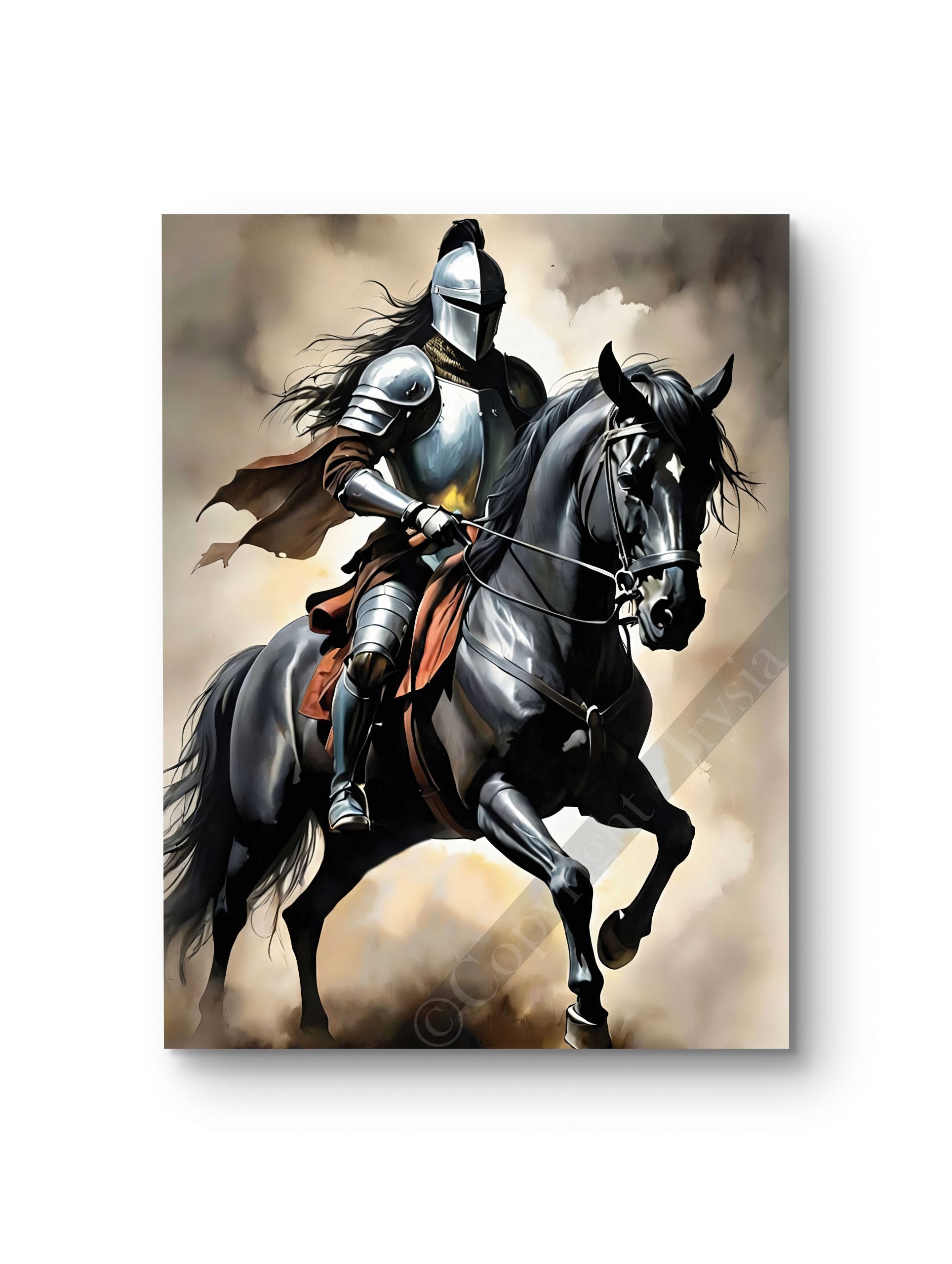 Revivez l’époque médiévale avec ce tableau impressionnant illustrant un chevalier en armure sur son destrier noir. Chaque détail est minutieusement travaillé pour offrir une scène épique, pleine de puissance et de noblesse. Que ce soit pour une décoration historique ou pour exprimer votre passion pour l’héroïsme, ce tableau s’adapte parfaitement à tout espace. Impression haute qualité disponible sur toile, châssis entoilé, verre, verre acrylique et aluminium.
