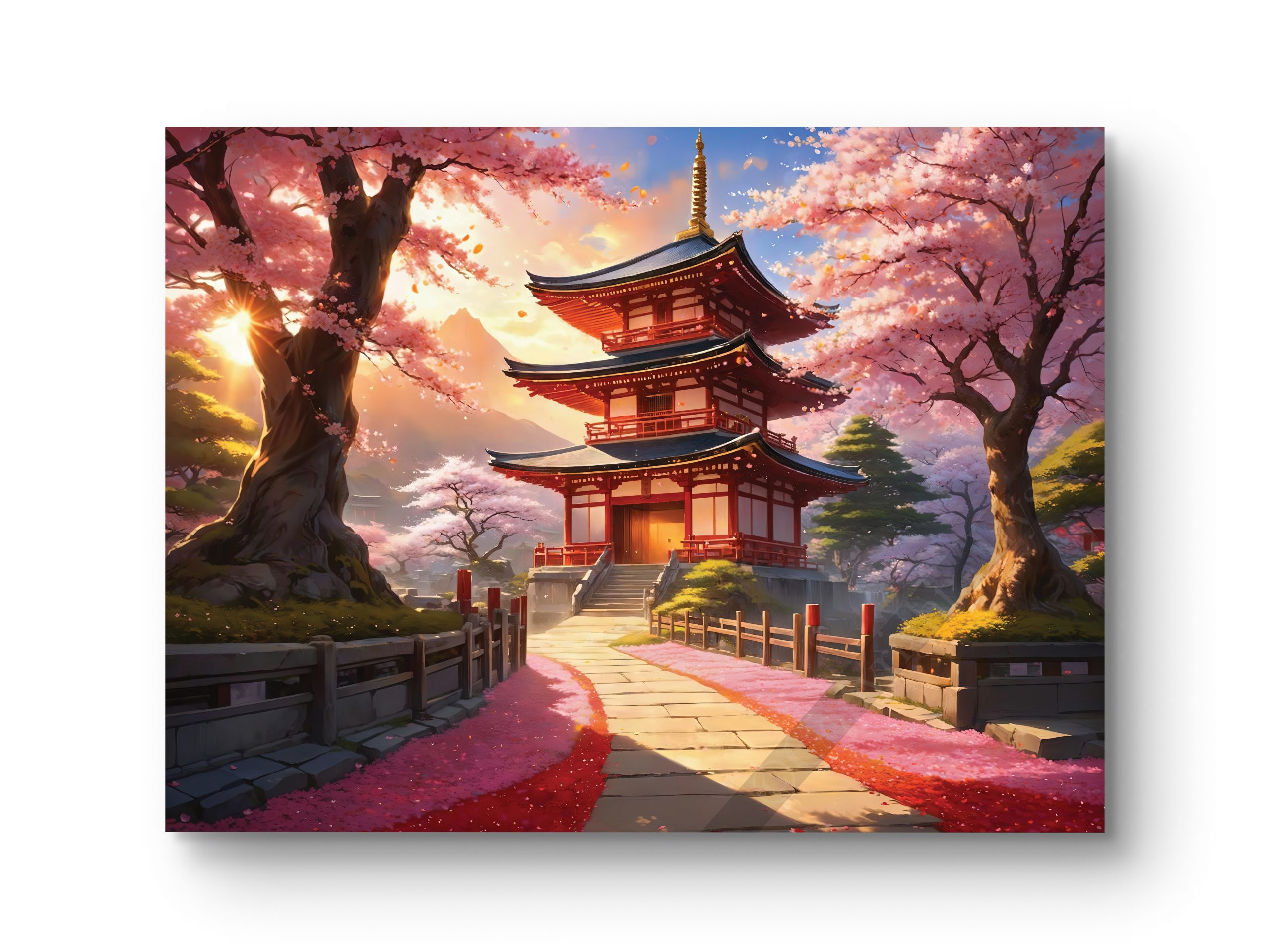 Plongez au cœur du Japon traditionnel avec ce superbe tableau mettant en scène un majestueux temple pagode entouré de cerisiers en fleurs. Capturant la sérénité et la beauté du printemps japonais, cette œuvre apporte une touche d’élégance et d’évasion à votre intérieur. Disponible en plusieurs formats et supports (toile, châssis entoilé, verre, verre acrylique, aluminium), ce tableau bénéficie d’une impression haute définition qui sublime chaque détail et nuance de couleur. Idéal pour créer une ambiance zen et apaisante, il s’intègre parfaitement dans un salon, une chambre ou un bureau.
