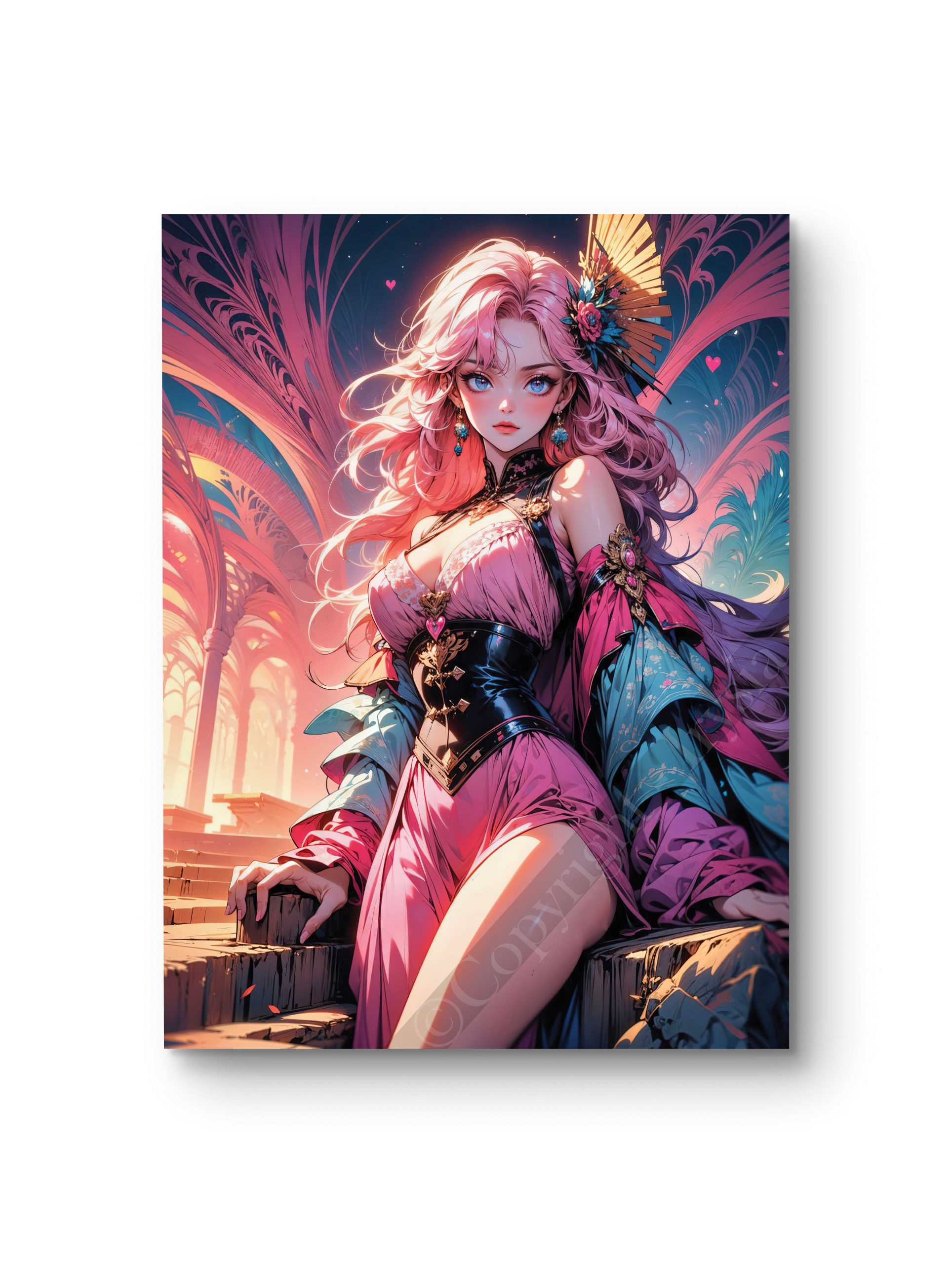 Ce tableau somptueux illustre une femme dans un décor royal et sophistiqué, habillée de teintes rosées. Un mélange de féerie et d’élégance qui en fait une pièce unique pour sublimer votre intérieur. Disponible en plusieurs tailles et supports : toile, châssis entoilé, verre, verre acrylique et aluminium.