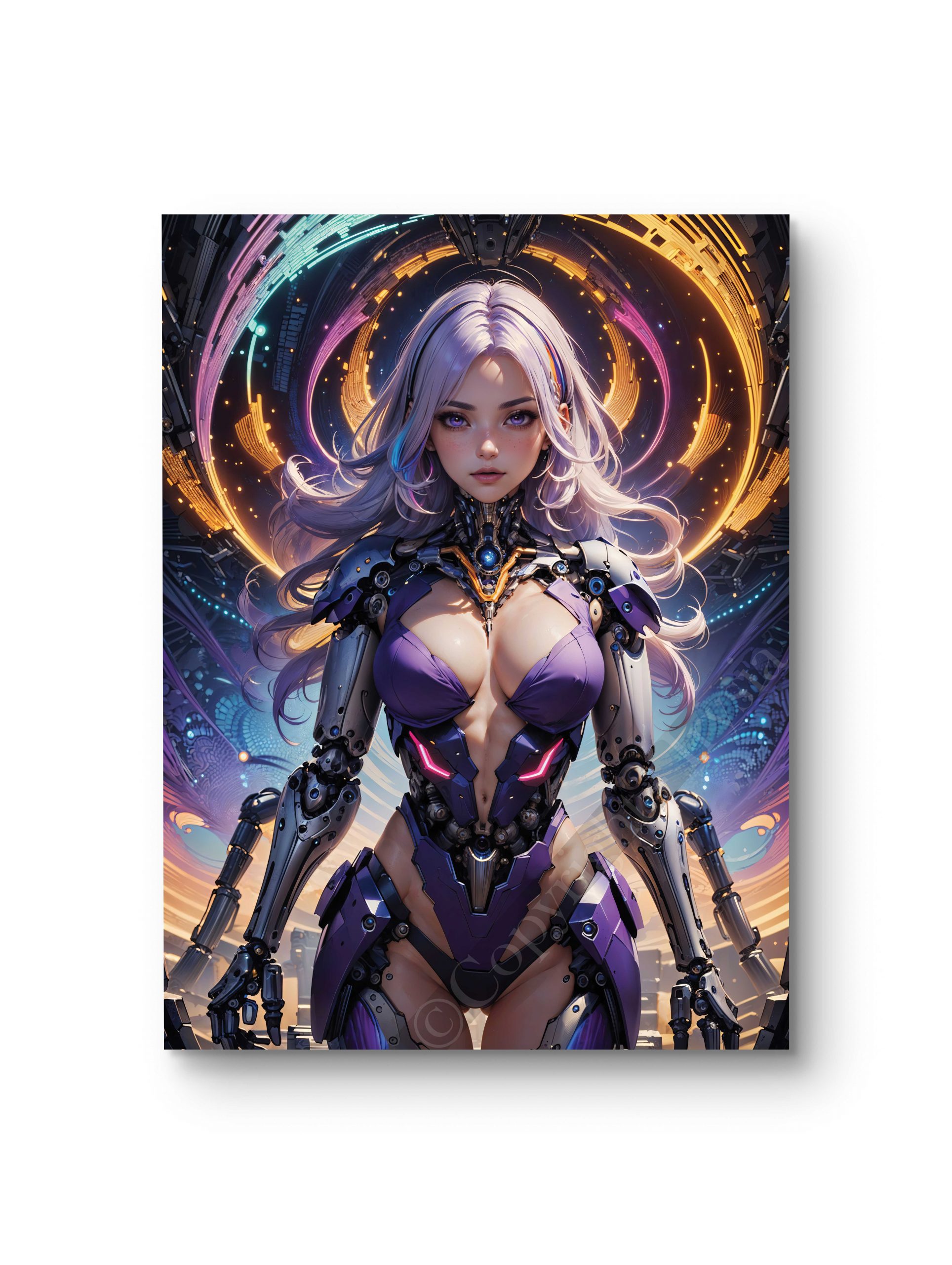 Un tableau captivant représentant une guerrière cybernétique dans un décor futuriste et lumineux. Un choix idéal pour une ambiance high-tech et moderne. Disponible en plusieurs tailles et supports : toile, châssis entoilé, verre, verre acrylique et aluminium.