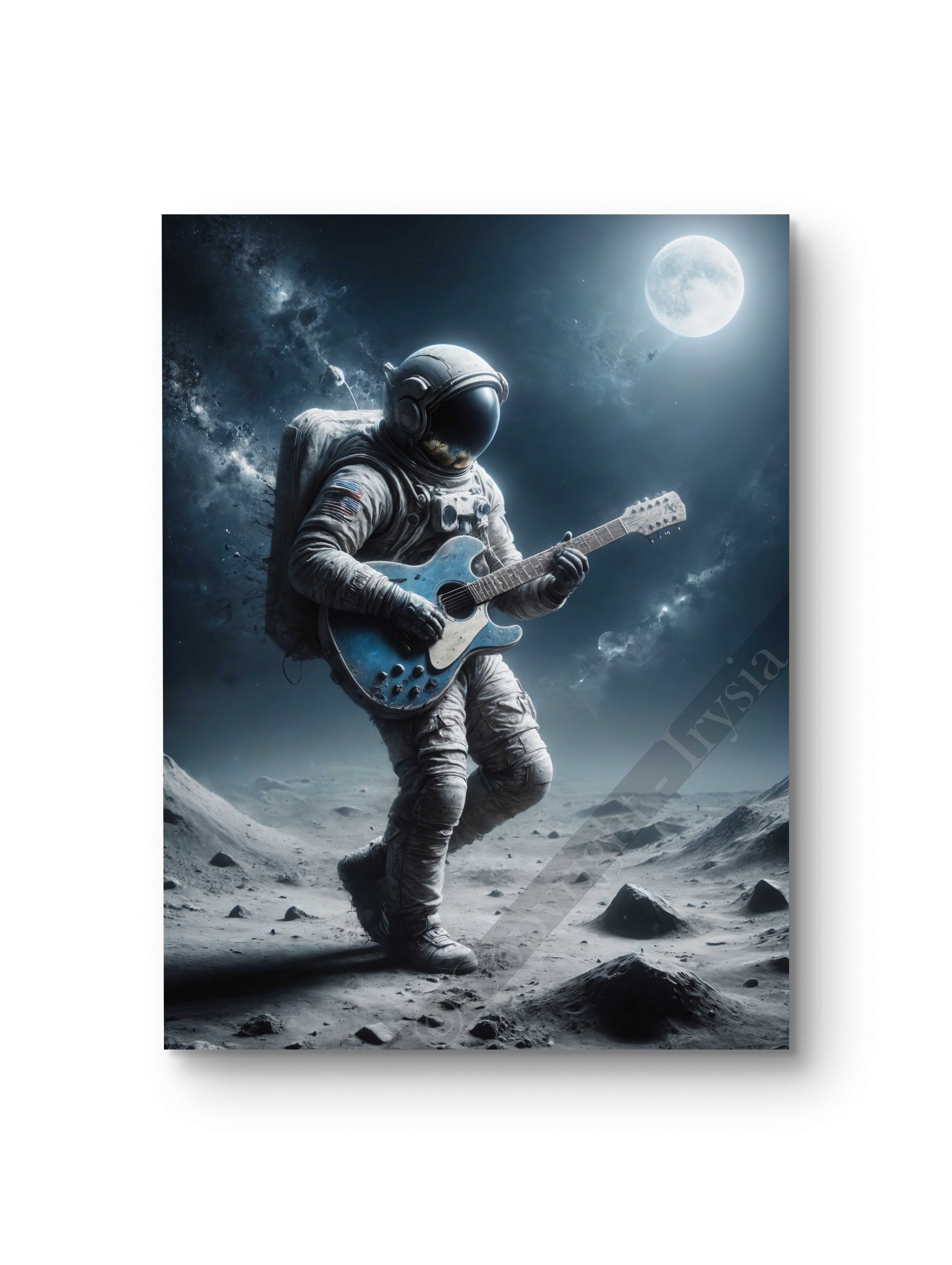 Voyagez au cœur de l’imaginaire avec ce tableau d’un astronaute jouant de la guitare sur la Lune. Une fusion parfaite entre art, musique et science-fiction pour une décoration hors du commun. Disponible en plusieurs tailles et supports : toile, châssis entoilé, verre, verre acrylique et aluminium.