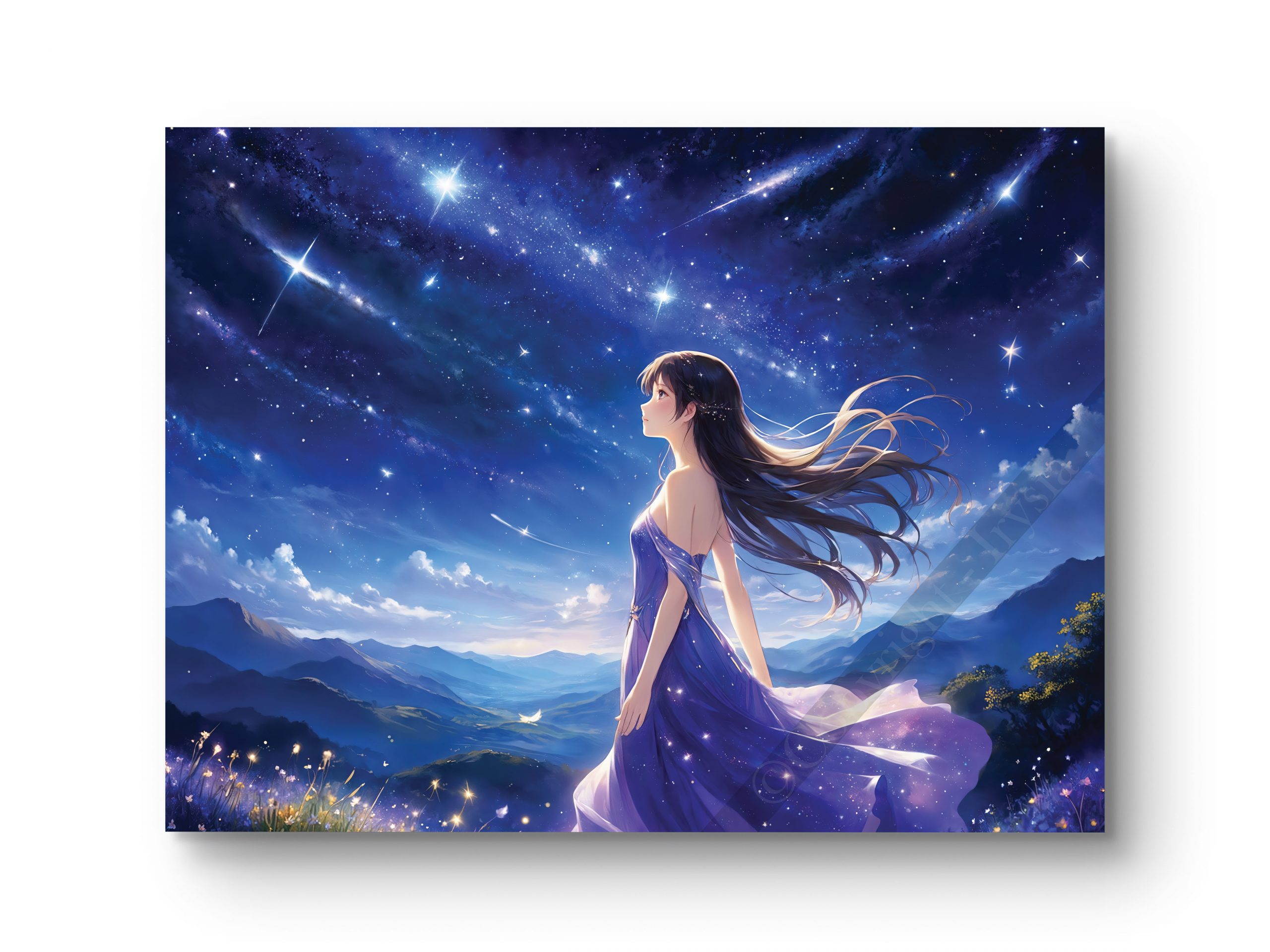 Un portrait envoûtant d’une femme sous un ciel étoilé, où les jeux de lumière ajoutent une touche cosmique et mystique. Ce tableau captivant est parfait pour une décoration moderne et inspirante. Disponible sur toile, châssis entoilé, verre, verre acrylique et aluminium, il est imprimé en haute définition pour une qualité visuelle exceptionnelle et durable.