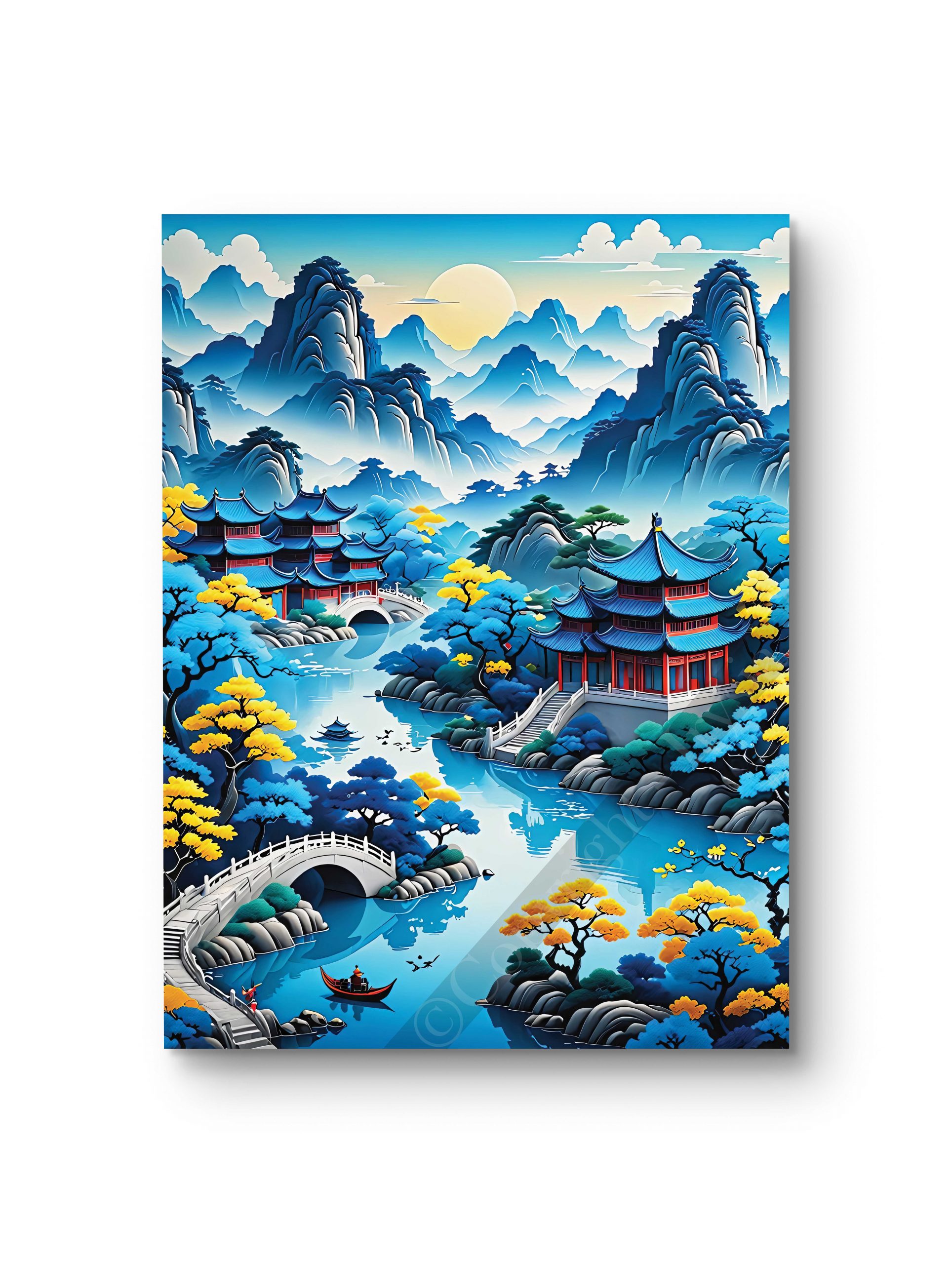 Ce tableau vibrant propose une vision artistique d’un village japonais entouré de montagnes et de cours d’eau sinueux. La palette de couleurs audacieuse et les contrastes forts offrent un rendu spectaculaire qui attire immédiatement le regard. Inspiré par l’art japonais traditionnel, cette œuvre apporte une touche d’originalité et de dynamisme à votre intérieur. Disponible sur divers supports : toile, châssis entoilé, verre, verre acrylique et aluminium.