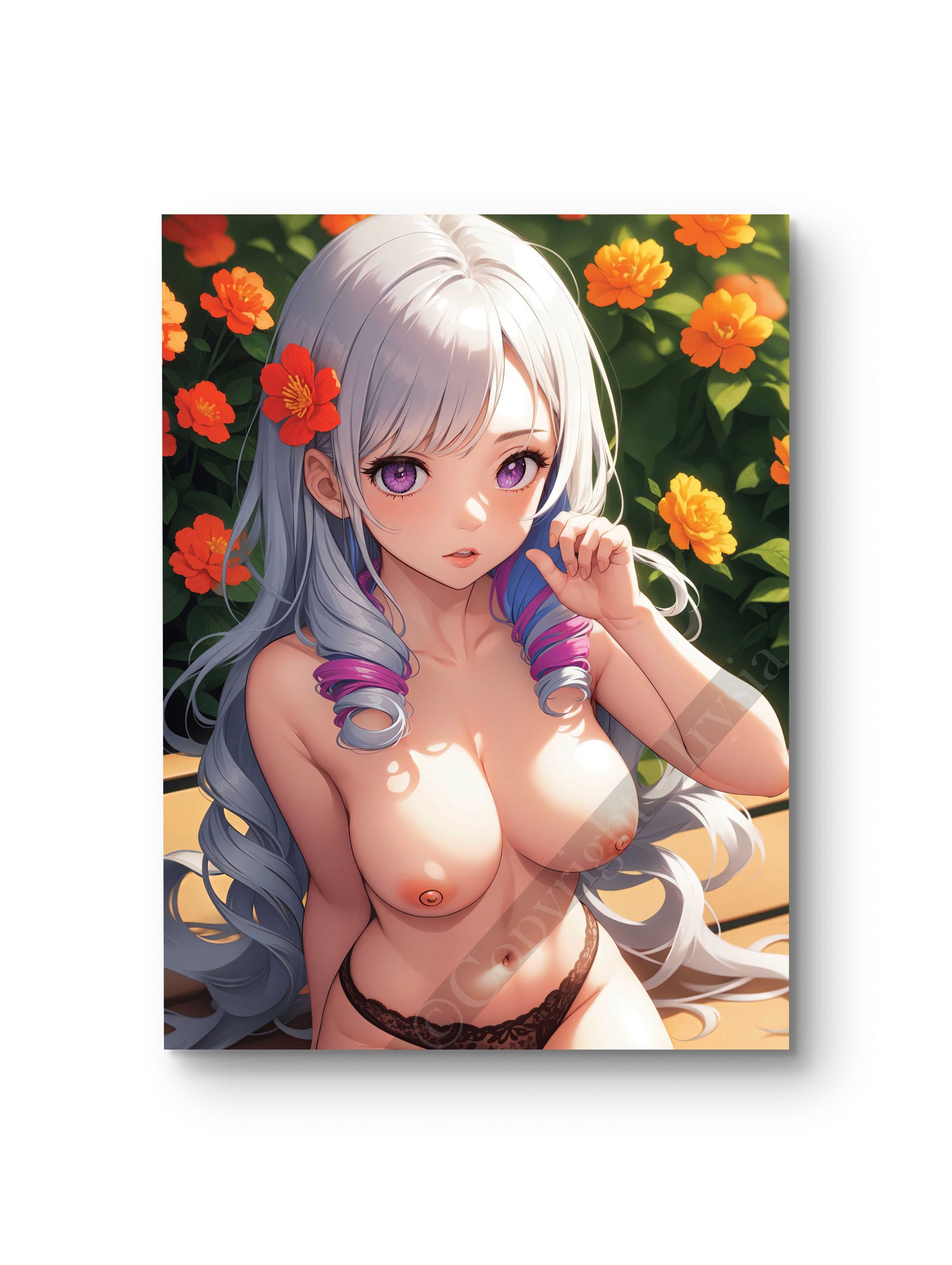 Ce tableau en style anime sexy met en avant une femme délicate entourée de fleurs éclatantes, évoquant la beauté et la sérénité d’un instant suspendu. La lumière dorée qui caresse son visage et le décor luxuriant en font une pièce parfaite pour une décoration douce et romantique. Disponible en plusieurs tailles et supports (toile, châssis entoilé, verre, verre acrylique, aluminium).